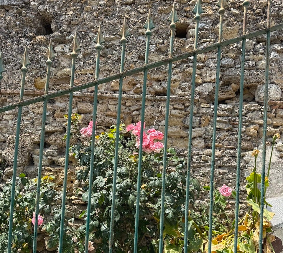 I’ll be back next week. I took a lot of photos of roses in Italy, particularly those thrive in unlikely places, such as against this millennium-old wall. There’s probably some clever reference to Weber and cages in this photo but really it’s just about stopping to notice beauty. It seems like we need that more than ever this month.