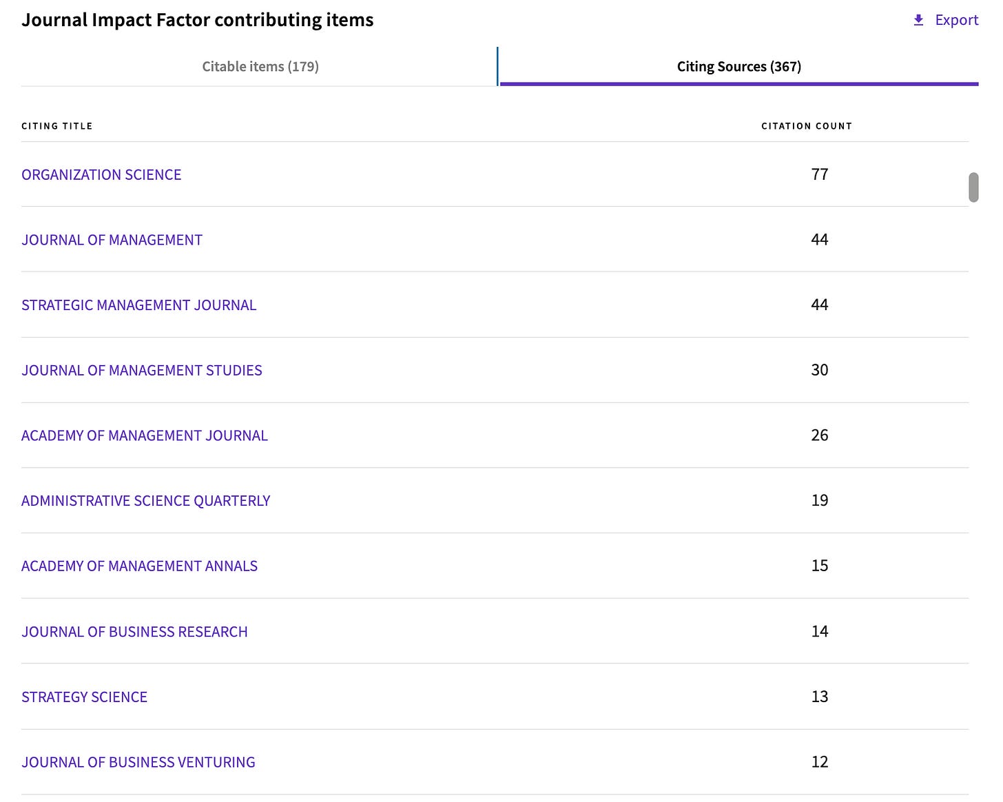 There’s a lot of interesting data in journal citation reports, so if your school has a Web of Science subscription you should be able to peruse them. Then maybe you can explain all the eigenfactor calculations to me. But for scholars considering submitting here at Organization Science, this is a snapshot of the journals that cited our papers the most in 2024. And yes, you can make some snarky remarks about us citing ourselves, but that’s the case with nearly every large journal (AMJ is a rare exception, where they are a close second, but they just get cited A LOT).