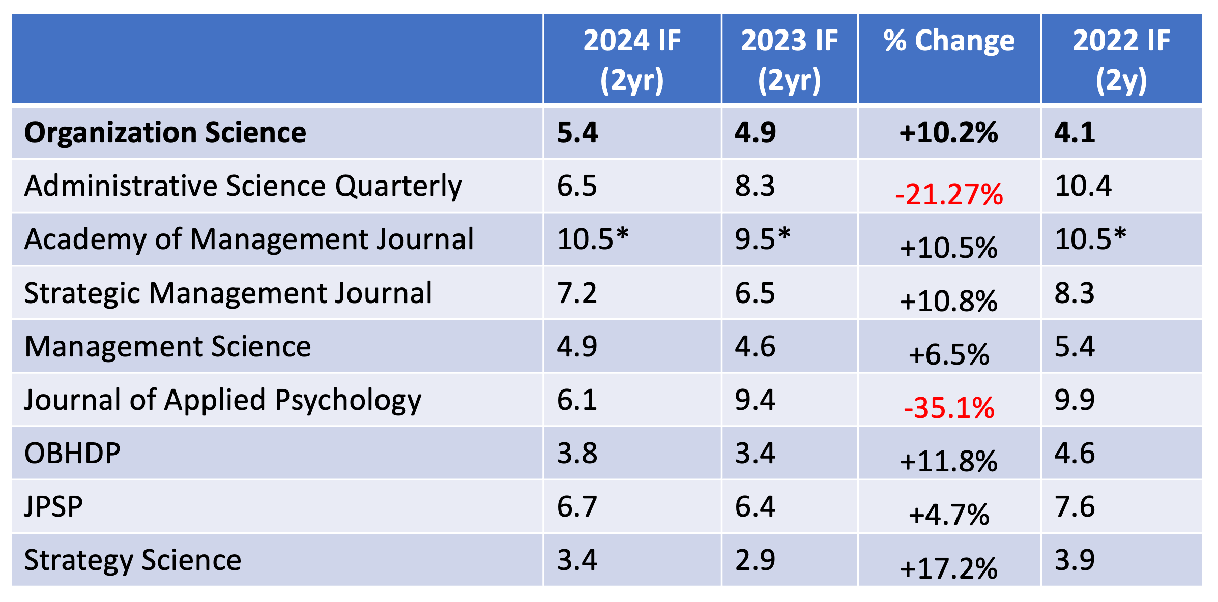 As I’ve reported below, our impact factor went up again. Take that for what it is. There are certainly some other journals not on the table below with much higher scores for various reasons that are completely uncorrelated (or negatively correlated) with our mission.2